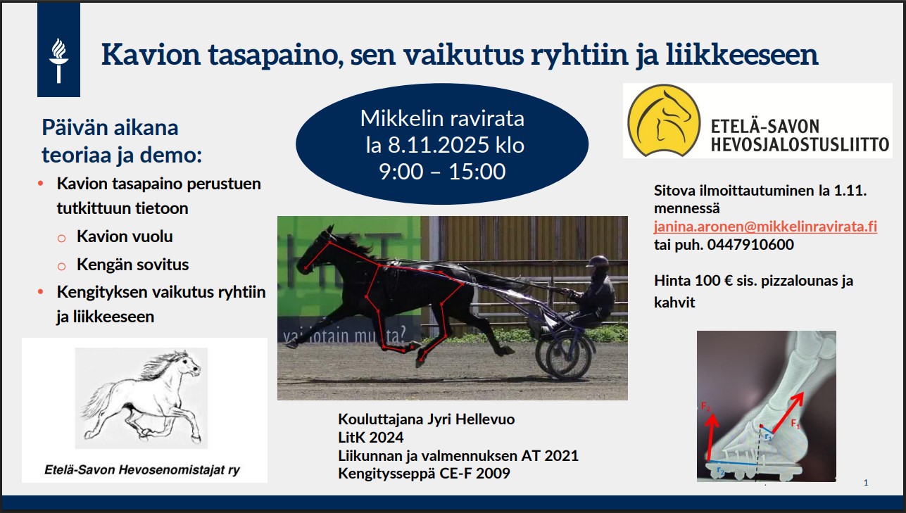 Mikkelin raviviikonloppuna on monenmoista oheisohjelmaa, joista osassa taustalla on paikallisyhdistyksemme Etelä-Savon Hevosenomistajat ry – kannattaa kurkata myös heidän Facebook-sivunsa!